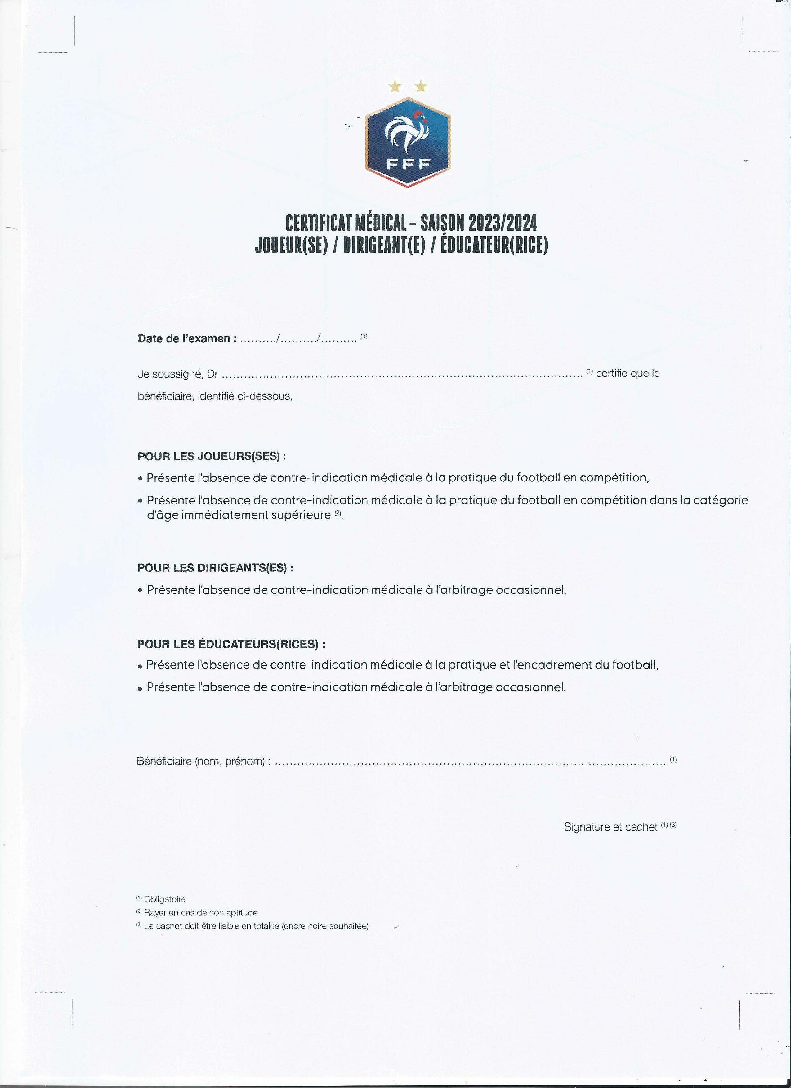 Utile pour les majeurs si Foot club vous le demande