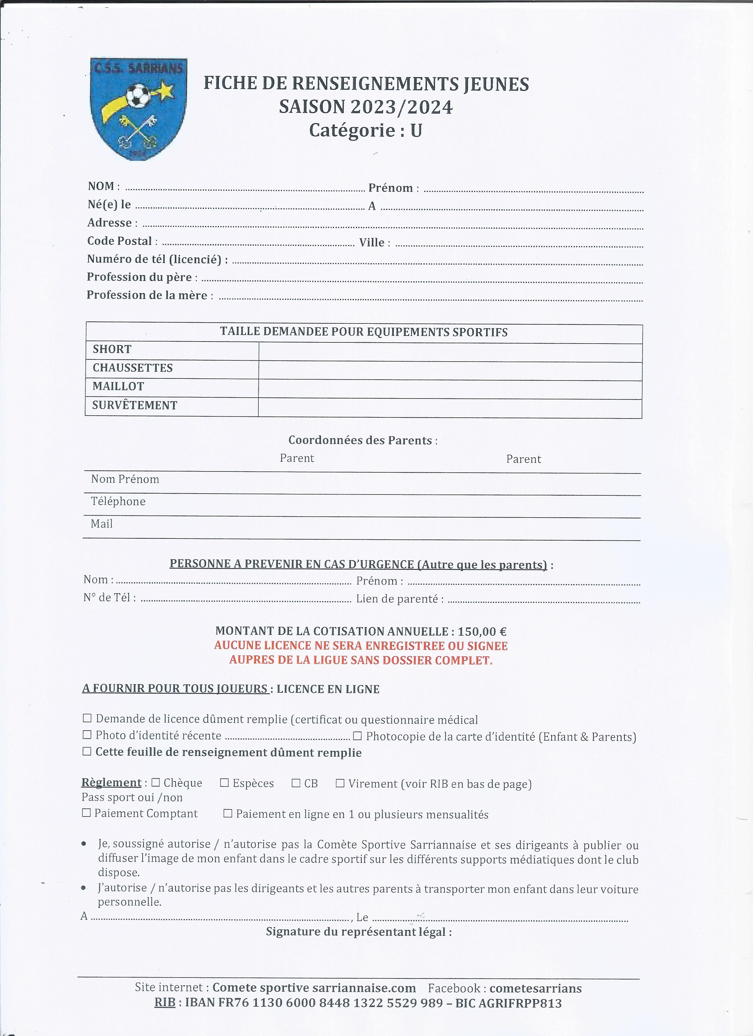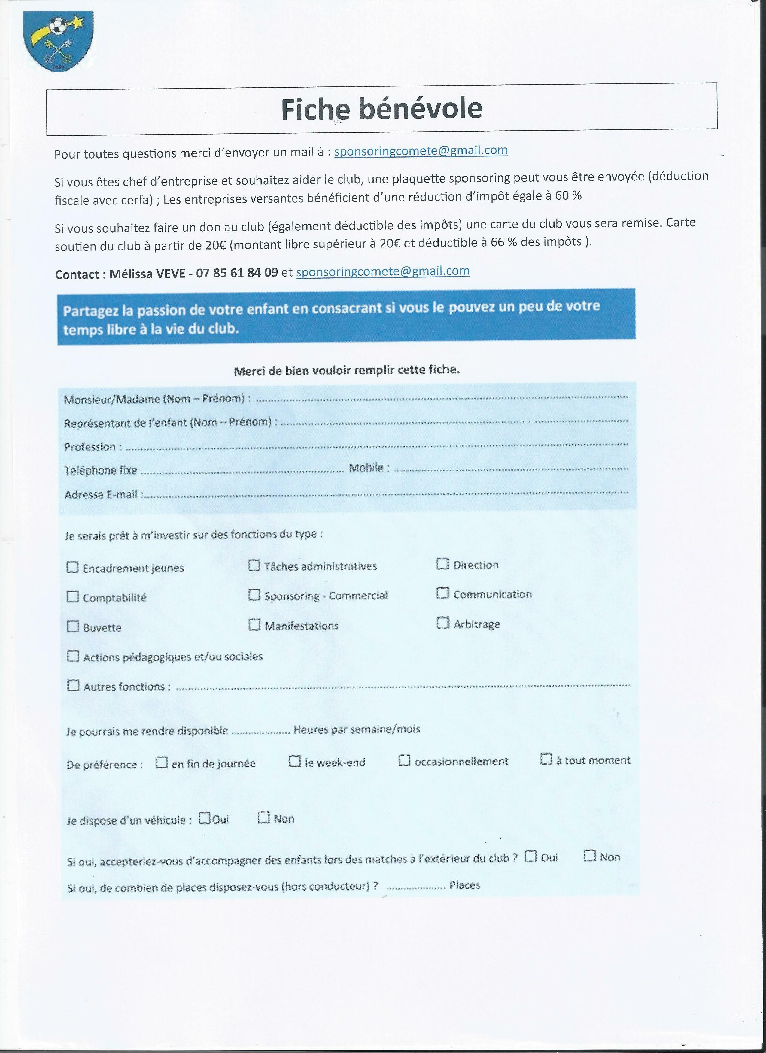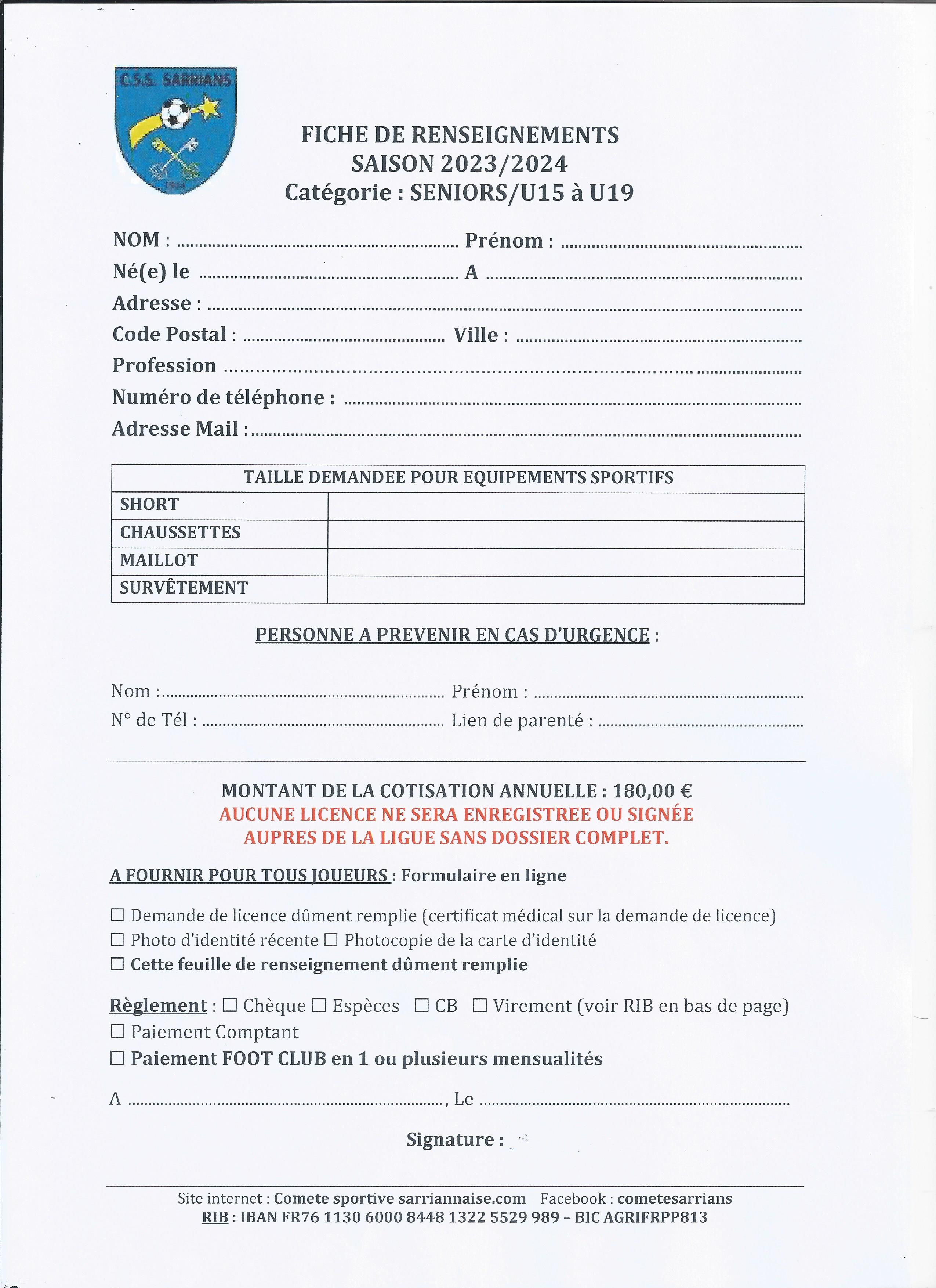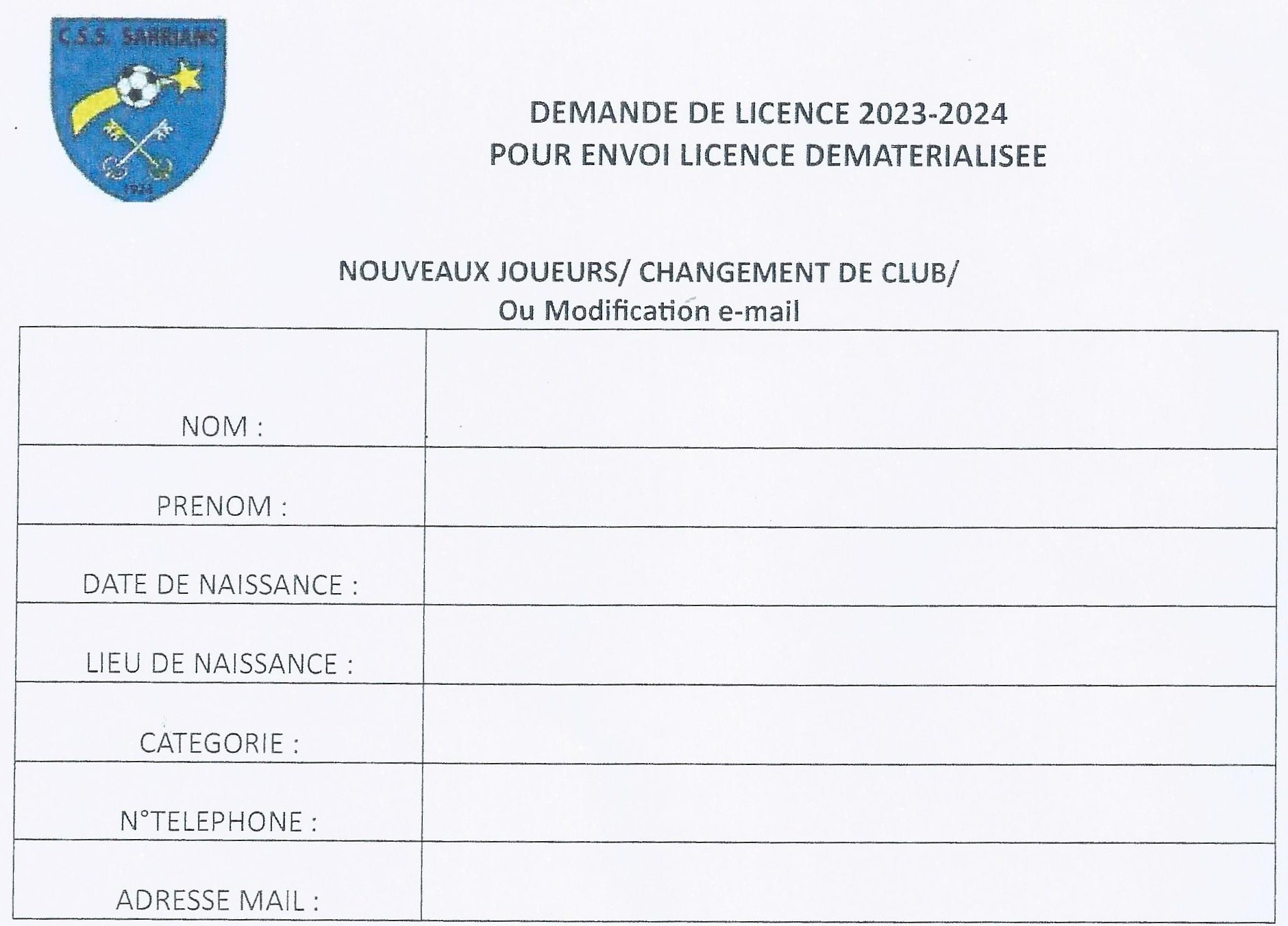 A remplir pour qu'on vous envoie le lien pour faire votre licence